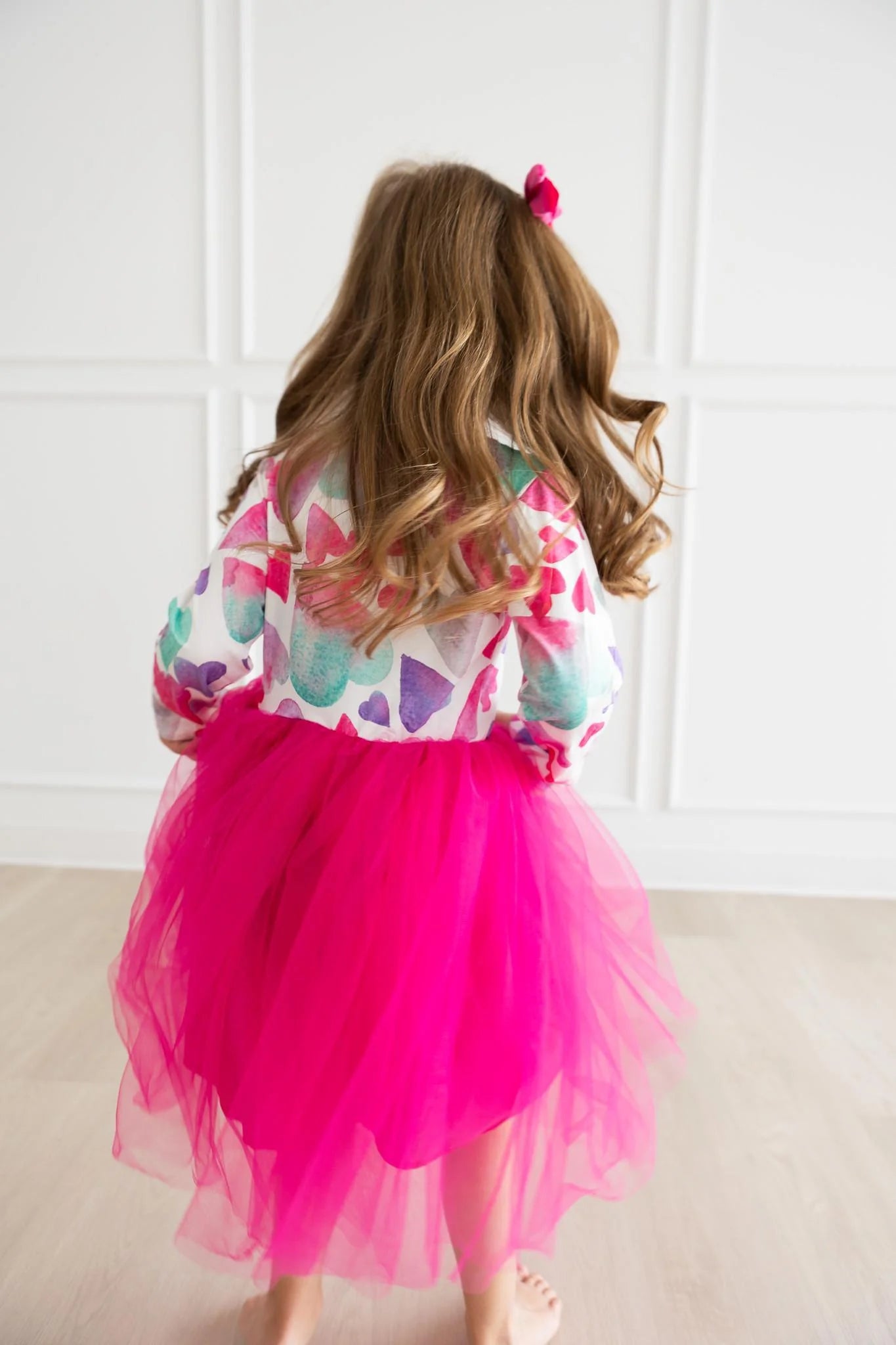 Light Hearted Tutu Dress. Perfect for the girl who likes to dress up every single day. Great for special occasions, but comfortable for everyday play! Mila wears them everywhere, from the playground to Sunday school! 95% Polyester, 5% Spandex. Sizes: 4T, 5/6, 7/8.