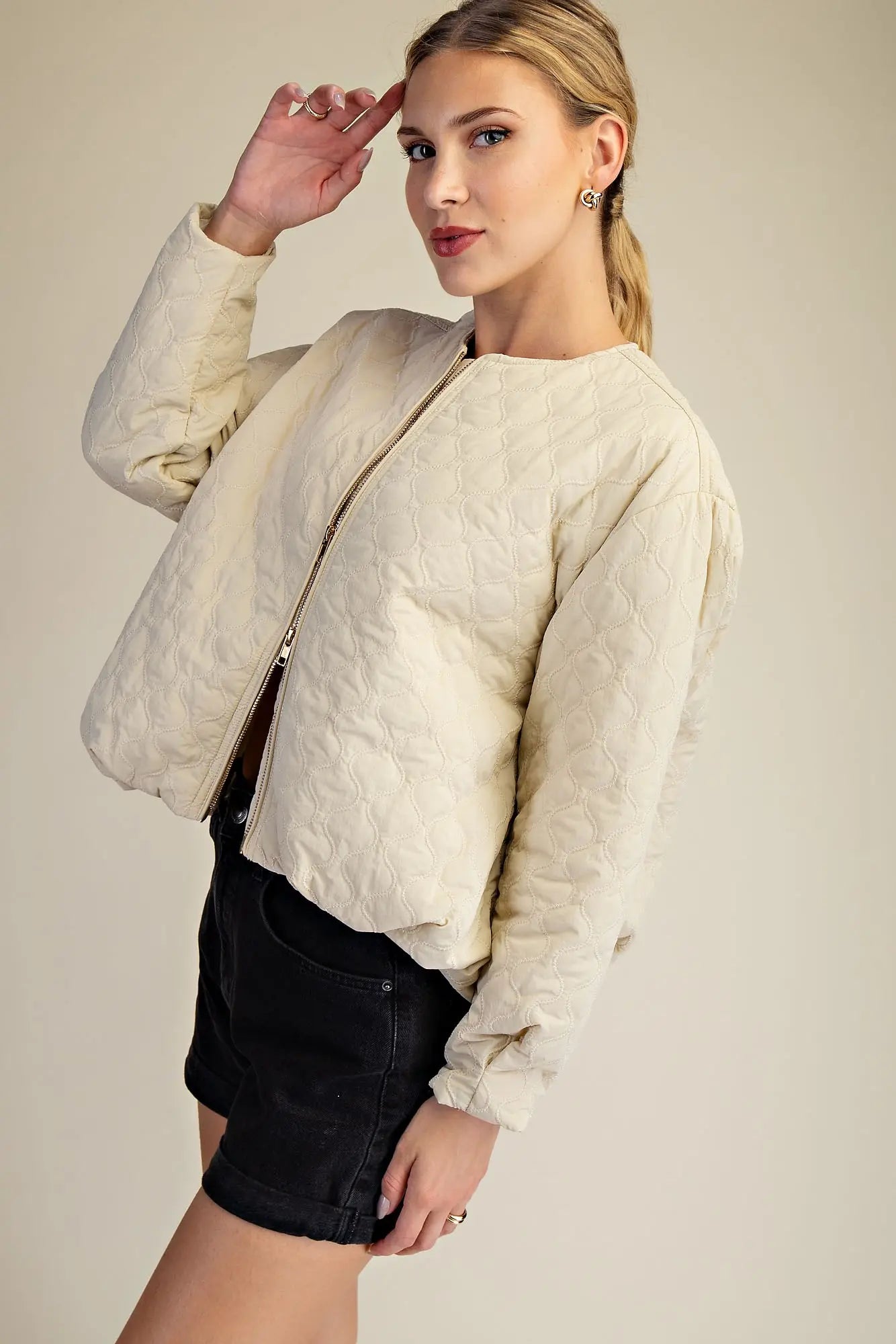Quilted Jacket - Beige. Round Neck, Zipper Closure, Quilted Jacket. 100% Nylon. Colors: Beige, Wine. Sizes: S, M, L.