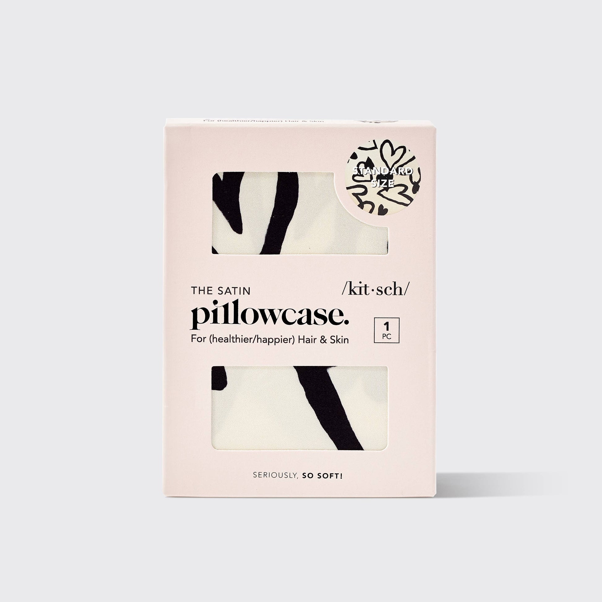 Satin Pillowcase - Heart. KITSCH - Elevate beauty rest with the luxurious feel of satin -May help tame frizz & reduce breakage while sleeping -Aids skin in retaining moisture -May help reduce breakouts -May help prevent facial creases from sleeping -Gentle on eyelashes, eyebrows and most skin & hair types